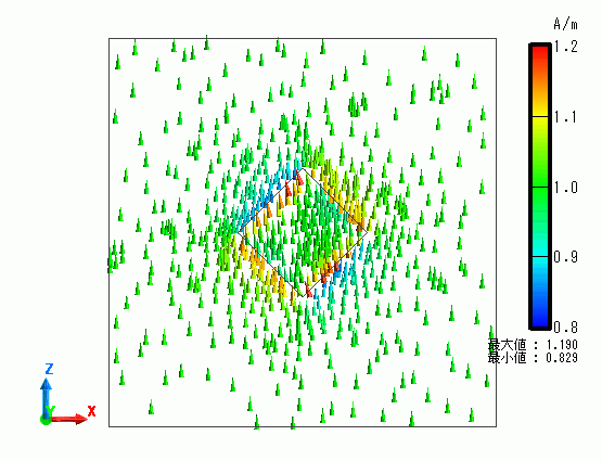 磁界ベクトルや磁束密度ベクトルを解析結果として見ることができます。