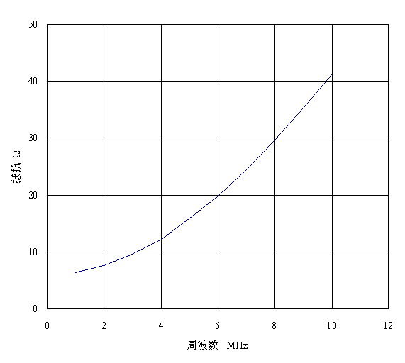 下図はコイルの抵抗値です。周波数が高くなると電流密度に分布ができ、その結果、抵抗が高くなります。