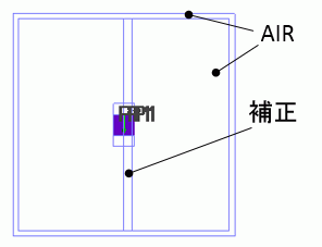 PECとポートで構成される微小ダイポールアンテナの周囲に空気領域を作っています。”補正”というボディは、電磁界補正する領域です。計算時間の短縮のため、補正領域を限定しました。