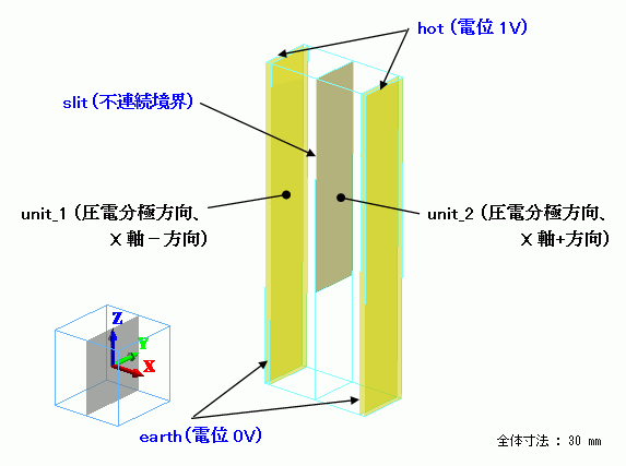 ホーム / 例題集 / 圧電解析[Rayleigh] / 例題14 スリット