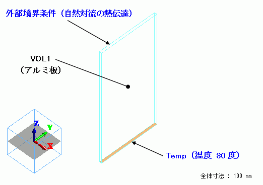 底面の温度が一定に維持されたアルミ板から自然対流によって放熱している場合の定常解析例を示します。