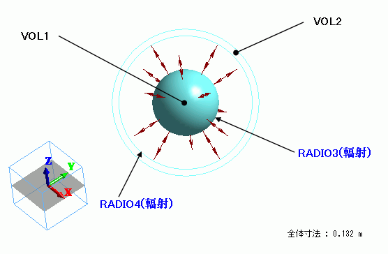 初期状態において温度差を有する物体間の輻射の解析を行った事例を示します。