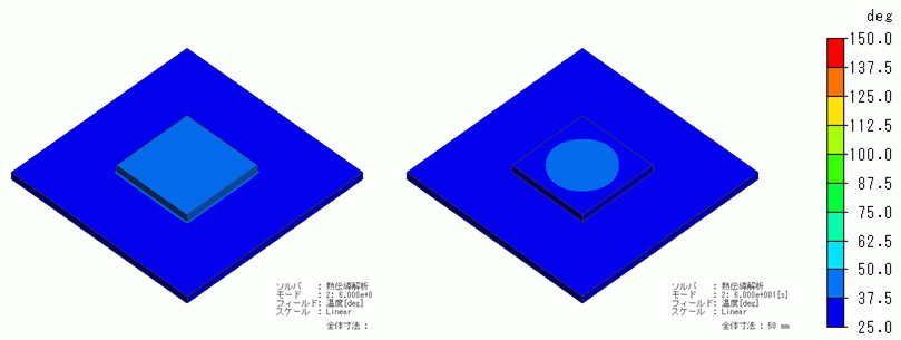 としていますので初期温度25度から600秒間における温度分布の変化を解析すること
