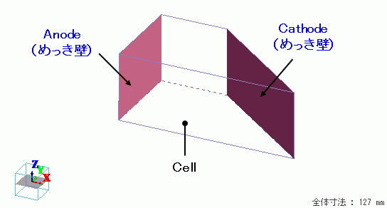試験槽の形状のソリッドボディで作成し、材料としてはめっき液を設定しています。