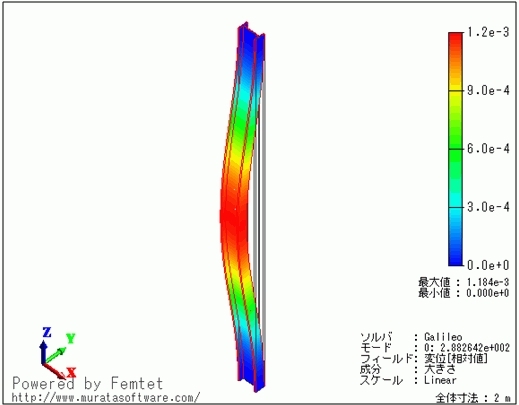上の結果より、本モデルでの座屈荷重係数が288であることが分かります。