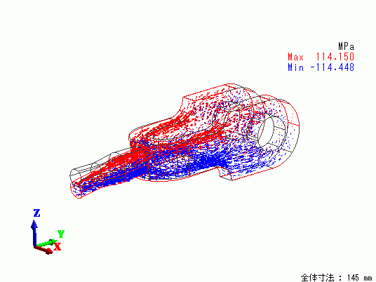応力ベクトル図を示します。最大値、最小値の単位は[Pa]です。