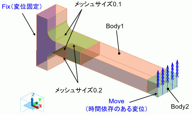 複数ステップの設定を行い、片持ち梁の先端の変位境界に時間依存性