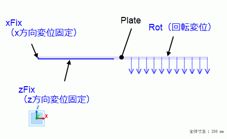 長さ200mmの直方体のソリッドボディを定義し、弾塑性材料を設定します。
