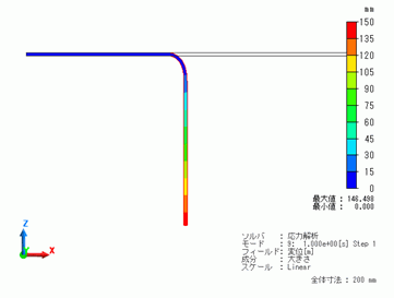 90°の曲げは、変形が大きいため、大変形の「大変位」オプションをチェックして解析します。