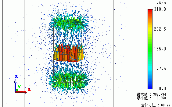 磁界ベクトルの解析結果を示します。