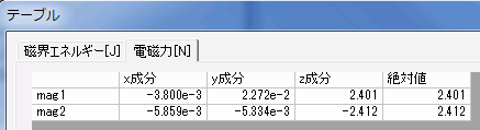 2つの磁石は約2.4[N]のZ方向の力で引きあうことが分かります。