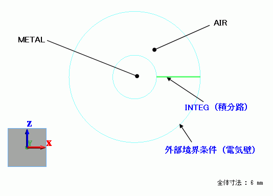 円形のシートボディでAIRおよびMETAL部分を作成し、外導体(AIR部の外周)と内導体(METAL)