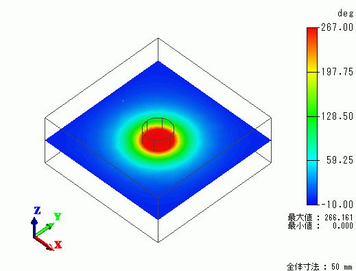 発熱体を中心に温度勾配の3次元的な分布が発生していることが分かります。