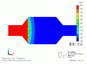 0.1[s]という短い時間で、流入側のパイプが100[deg]になっていることが分かります。
