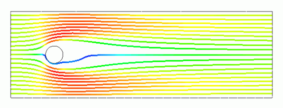 円柱をよけるように流線が形成されているのが確認できます。