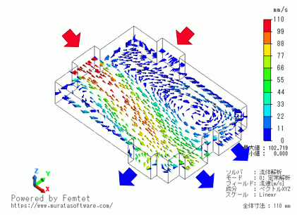 1箇所に強制流入、1箇所に強制流出を設定しています。