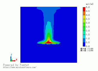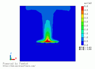 拡散解析を行うにチェックを入れる 解析の種類:過渡解析 拡散量の種類・単位:モル濃度[mol/m3]