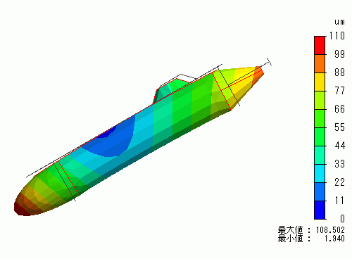 変位図を示します。コンター図は変位の大きさを示してます。