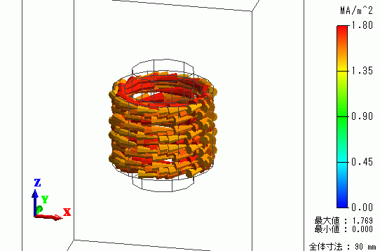 電流密度や磁界ベクトルや磁束密度ベクトルを解析結果として見ることができます。