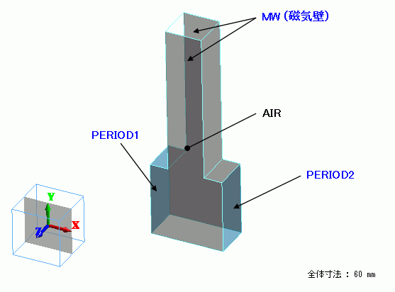 空気領域をソリッドボディで定義した。Z軸に垂直な面には境界条件を設定していない。