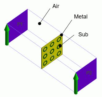 モデルは周波数選択板と空気領域(Air)で構成されています。