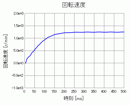 徐々に回転速度が増加して最終的に1250[r/min]程度で落ち着いています。