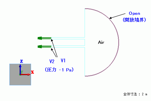 音圧発生部分に圧力境界条件を適用し、半円形状の円周部には開放境界条件を適用しています。