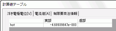 浮き電極の電位の解析結果は、[解析結果]タブの、