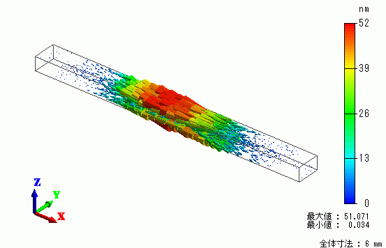 SheetBodyを使って解析した場合に得られた、厚み滑り振動の変位ベクトルを表示しています。