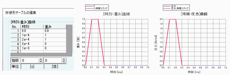 2[Pa] [時間依存]にチェック [重み関数]入力は下図参照