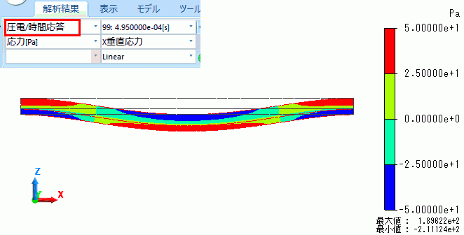解析時間の最後の結果から、X垂直応力を示します。