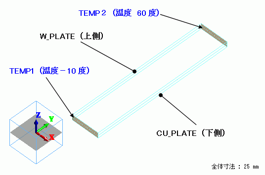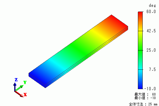 直方体のソリッドボディを定義し、線膨張係数の異なる組み合わせとして