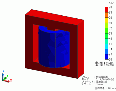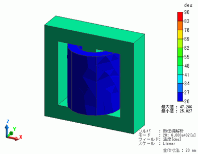 としていますので磁場熱連成解析終了時の温度を初期温度として、10分間における温度分布の変化を解析することができます。
