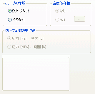 文献値などを参考にする場合、クリープ定数が定義されている単位系に合わせて選択することで クリープ定数の入力の際、定数の単位変換が不要となります。