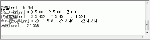 出力ウィンドウに、距離、距離の始点と終点の座標値、
