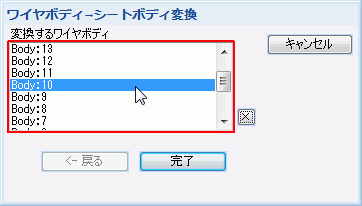 パラメータ入力ダイアログに列挙されているワイヤボディを選択すると、