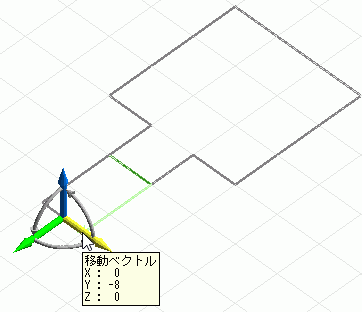 続けて、移動ベクトルをモデルウィンドウ上でクリックします。