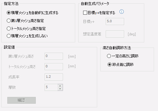 指定方法で[積層メッシュを自動的に生成する]を選択した場合、いくつかのパラメータから