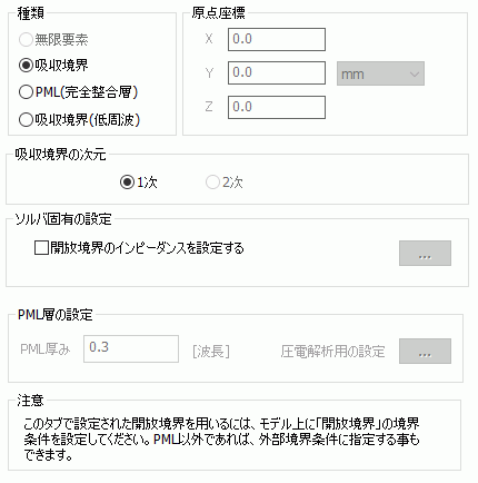 にチェックの無い状態が初期状態です。その場合、開放境界条件に平面波のインピーダンスが使われます。