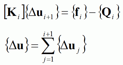 次の反復では、{K1}、{f}、{Q1}を用いて、{Δu2}、及び、{u2}を求めることができます。