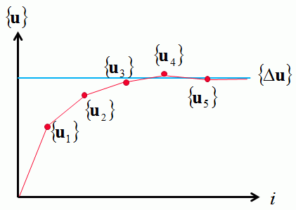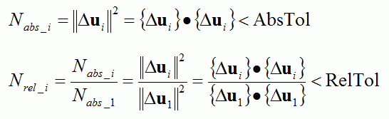 1回の反復当たりの増分{Δui} = {ui} - {ui-1} が十分に小さい値になったかどうかで判定します。