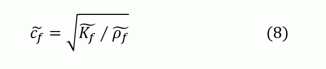 Femtetで使うには、密度、音速に変換する必要がある。 得られた実効密度と、体積弾性率から、複素音速 へは、以下の(8)式 の関係を使って、変換する。