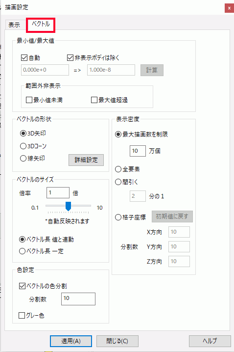 3. コンター図やベクトル図等の結果表示設定を登録することができます。