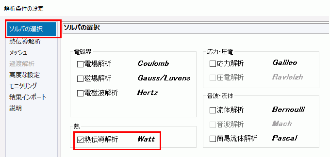 [ソルバの選択]タブで[熱伝導解析