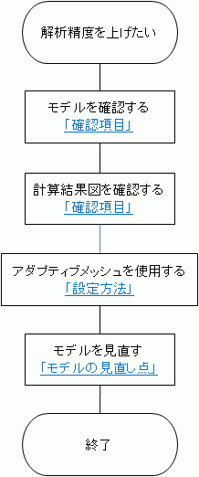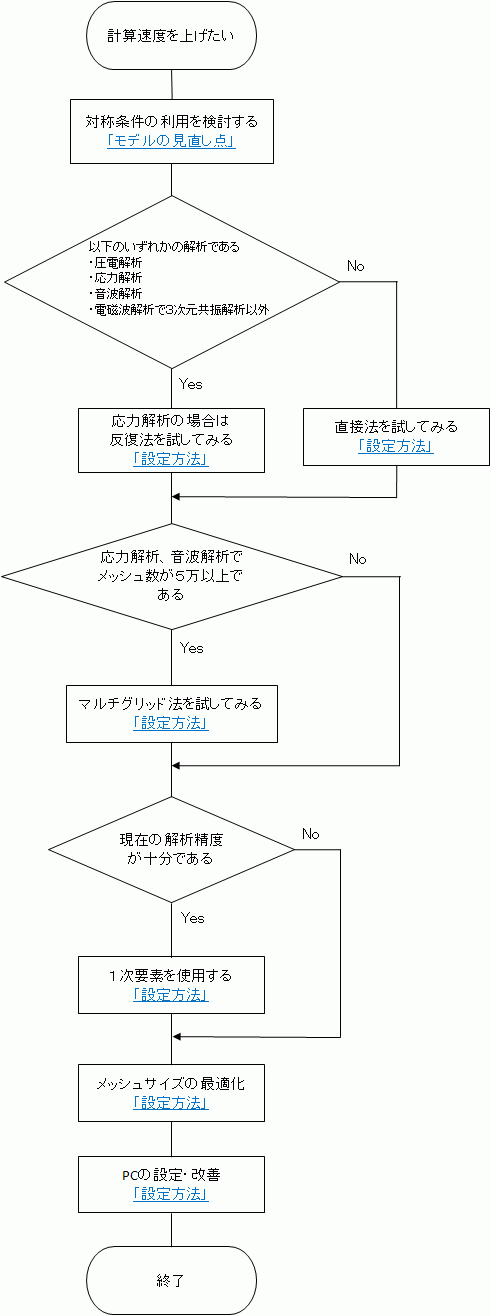 下図は解析精度を上げたい場合と計算速度を上げたい場合の一般的な手順を示すフローチャートです。