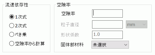 2次式:多孔質内部の抵抗による圧力損失が流速uの2次式に従う場合の係数を指定します。