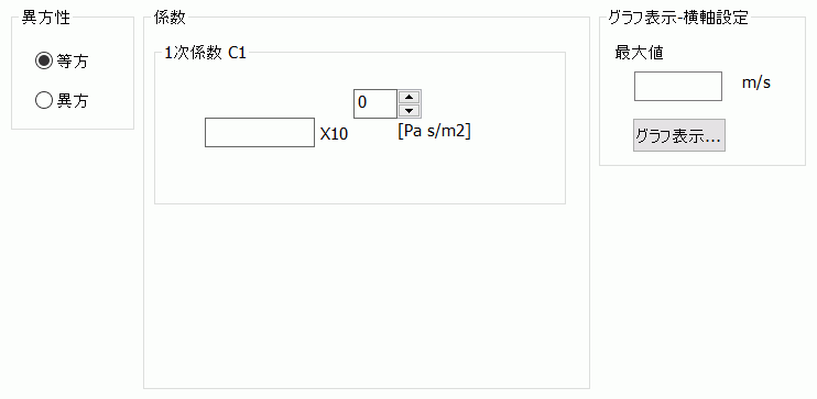 係数を指定します。 異方性を設定する場合、3方向の係数の設定を行います。