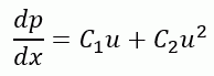 dp/dx:距離当たりの圧力損失、p:圧力、u:流速、C1:1次係数