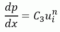 dp/dx:距離当たりの圧力損失、u:流速、C3:べき乗係数、n:べき乗指数
