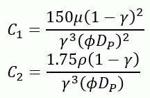 μ:粘度、ρ:密度、γ:空隙率、DP:粒子直径、Φ:形状係数